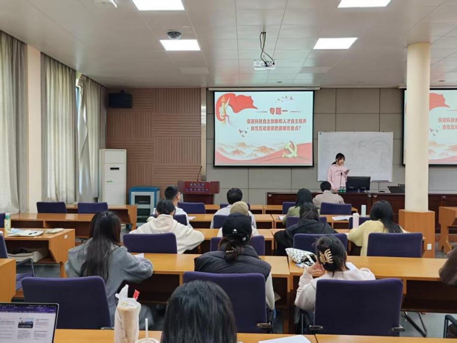 为深入理论学习,支部第三学习小组以“建设教育强国,促进科技进步,赋能人才发展”为主题作主旨发言。支部成员结合公共管理学科视角,围绕科技自主创新和人才自主培养良性互动、高等教育强国建设新路径等议题展开研讨,通过剖析典型案例深化对教育强国建设、学科发展的理解。党员李蕊在交流中表示:“面对当今时代需求,一体推进教育、科技、人才发展,是建设强国的重要支撑。”