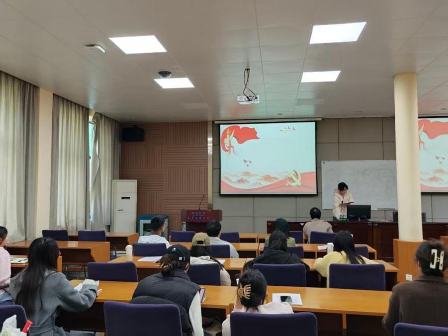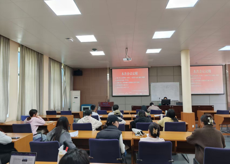 支部副书记黄蓉代表支委会作年度工作报告。对照落实上级党组织的部署要求,指出支部在理论学习成果转化,组织生活形式创新,党员教育管理精细化仍存在不足。黄蓉同志指出,支部在2025年总体表现良好,支部同志团结友爱,支部委员工作负责,持续打造“党建+学科”品牌,开展公益助学活动等,并通过小组领学的方式,以党建拓宽学科视野,增强支部同志党性修养。