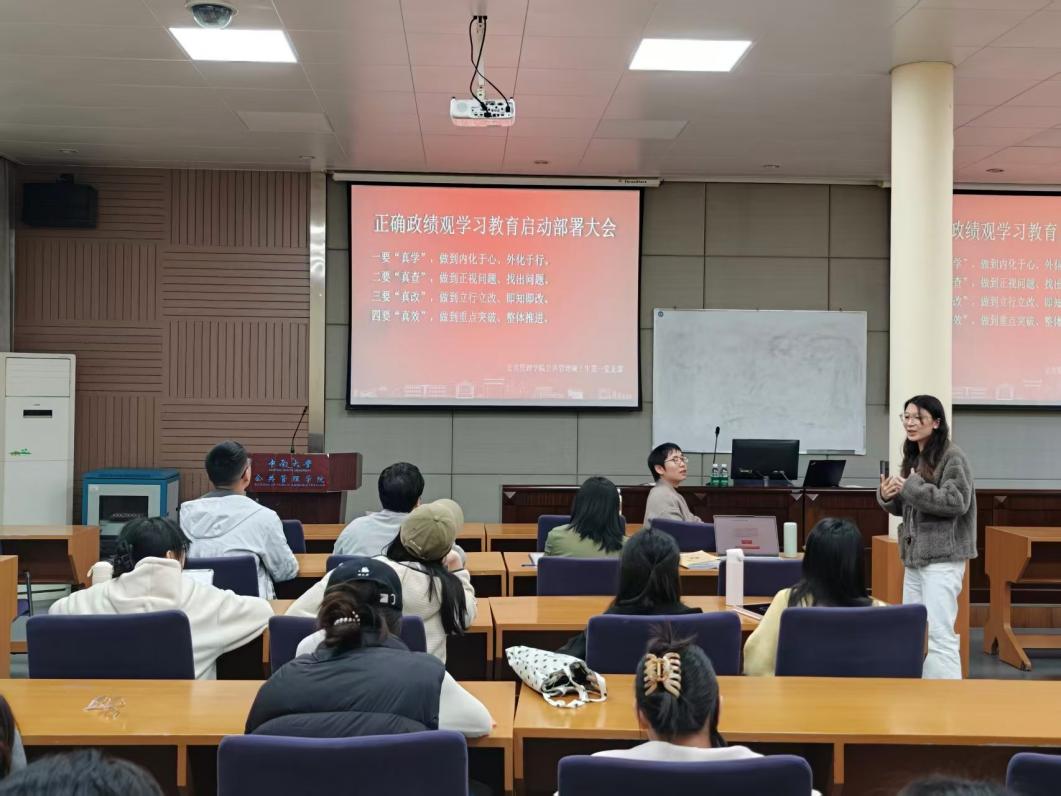 3月13日,中南大学公共管理学院硕士生第一党支部召开2025年度组织生活会暨民主评议党员大会。同时,为树立和践行正确政绩观,支部召开树立和践行正确政绩观学习教育启动大会。通过查摆问题、交流研讨、评议整改,全面加强支部政治建设,为新时代基层党建工作注入活力。会议由党支部副书记黄蓉主持。