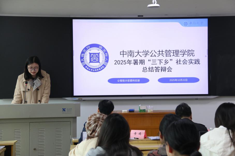 为深入推进实践育人,总结2025年暑期“三下乡”社会实践,10月22日下午2时我院于世纪楼主楼304举办2025年暑期“三下乡”社会实践总结答辩暨经验交流会。此次活动邀请行管系主任欧阳万福老师、社会学系黄娟老师担任专家评审,我院分团委科实部熊妍担任主持人。