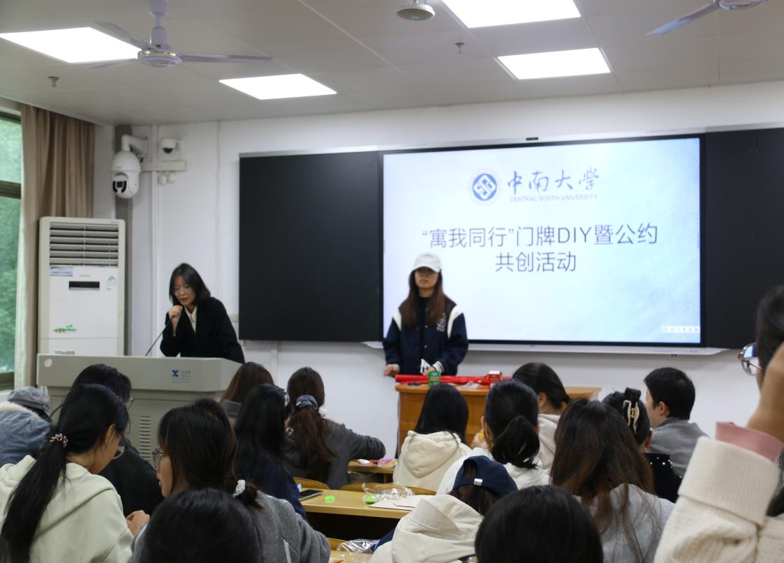 11月9日下午2时,我院“寓我同行”寝室门牌DIY暨公约共创活动在天心校区世纪楼A203顺利举行。本次活动吸引了16组寝室参加,旨在丰富学生寝室文化生活,激发同学们的创造与协作精神。