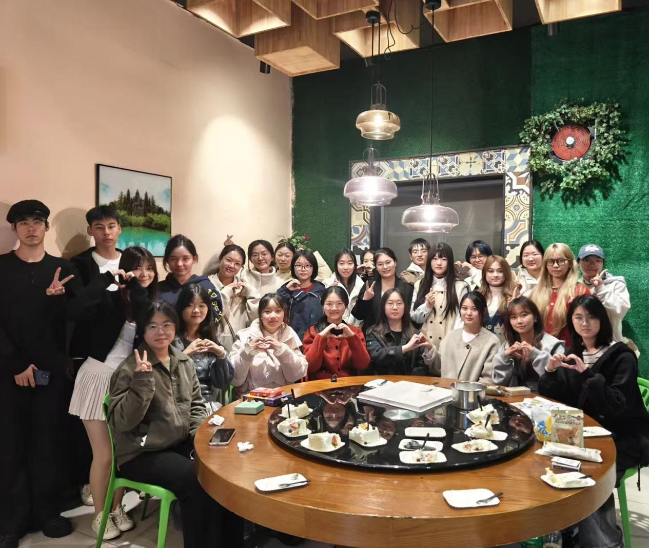 在自由畅谈的欢声笑语与趣味游戏的轻松氛围中,组策部同学精心筹备的惊喜蛋糕缓缓登场,瞬间点燃全场氛围。梁老师亲自为每位成员分切蛋糕,之后与大家一同举杯,既向同学们全程热情投入、积极参与表达了诚挚感谢,也为互助会未来的发展与成员间的深厚情谊送上了美好期许。