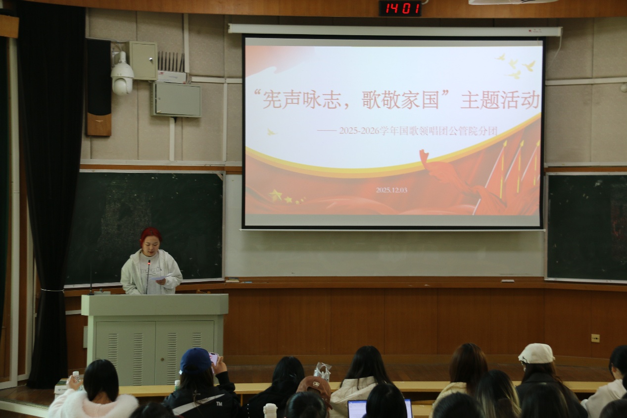 12月3日下午2时,为迎接第十二个“国家宪法日”,弘扬宪法精神,增强青年学子对国歌的尊崇与理解,我院在天心校区世纪楼D101室成功举办了“宪声咏志·歌敬家国”宪法日国歌领唱暨知识普及活动。活动由院学生会办公室干事文佳仪主持,国歌领唱团公管院分团全体成员及学院本科生共70余人积极参与。