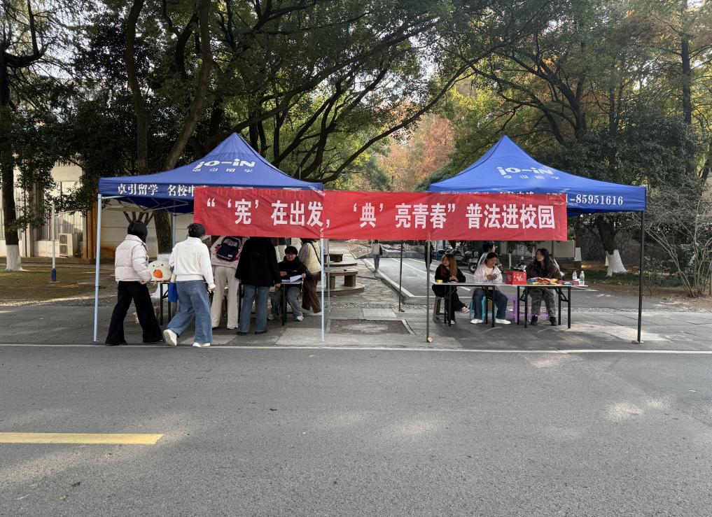 为迎接第十二个国家宪法日,深入推进“八五” 普法规划落地,切实提升在校师生法治素养,12月6日下午2时30分,我院朋辈心理互助会联合法学院朋辈心理互助会,于天心校区开展 “‘宪’在出发,‘典’亮青春”普法进校园活动,为参与活动的全体师生带来了一场兼具趣味性与实用性的法治文化普及课堂。