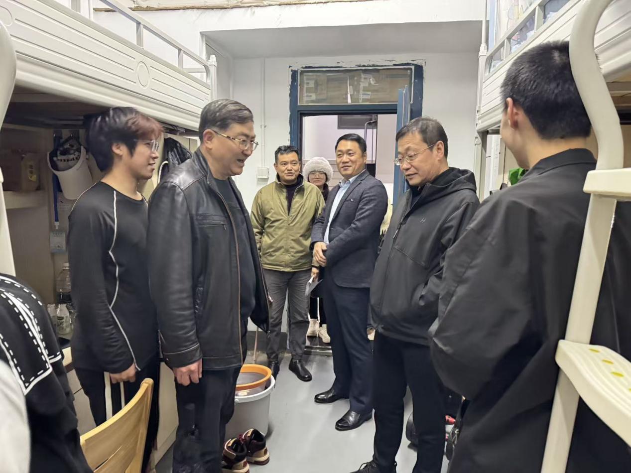 走访过程中,领导老师与同学们面对面亲切交流,详细询问大家的学习进度、生活需求与实际困难,倾听同学们的心声与建议。同时,重点查看了宿舍用电用水规范、消防设施状况及环境卫生情况。针对部分宿舍存在的杂物堆放杂乱、卫生死角未及时清理等细节问题,提醒同学们注意居住细节,引导大家共同维护整洁舒适的宿舍环境;结合冬季传染病高发的特点,叮嘱同学们坚持每日开窗通风,做好室内消杀,养成良好个人卫生习惯,筑牢健康防护屏障。