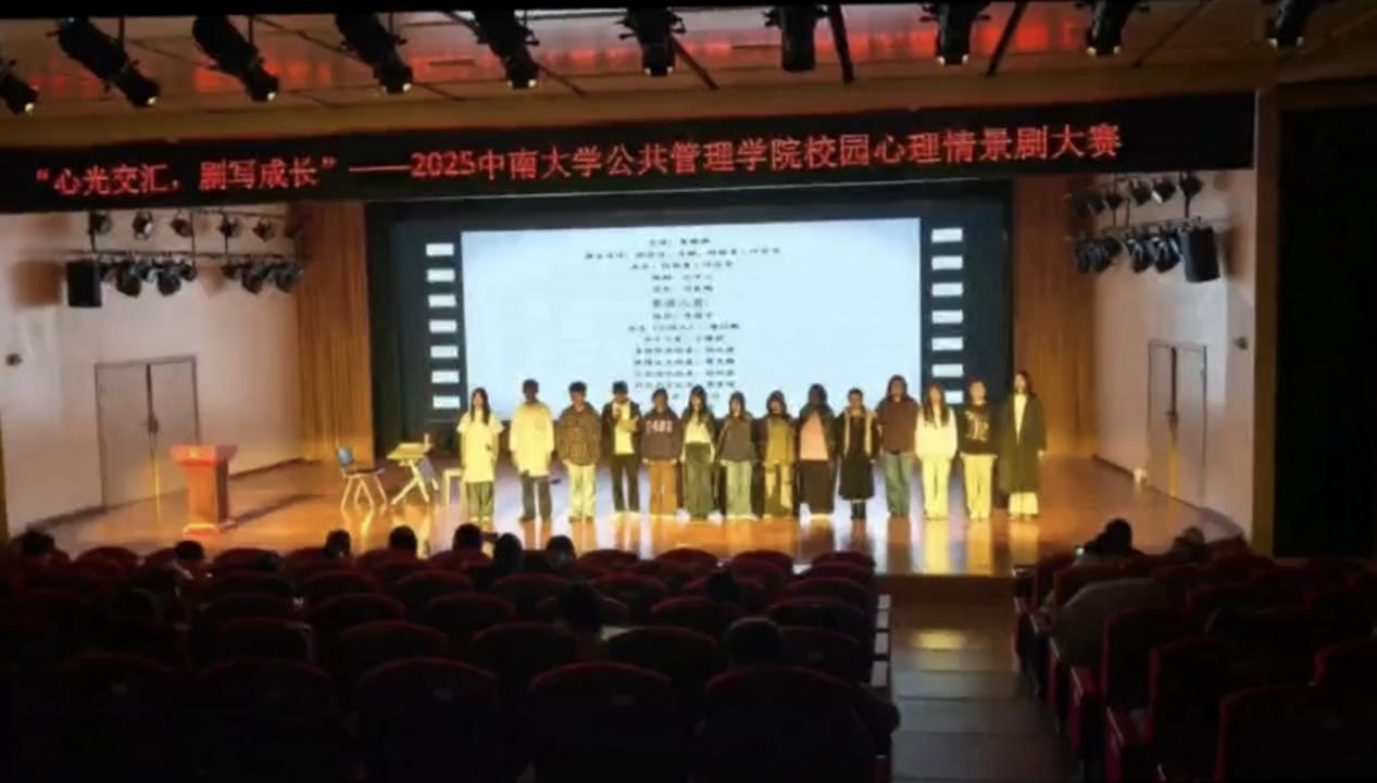 12月19日晚,中南大学第二十五届校园心理情景剧大赛在麓南校区礼堂顺利开赛,由公共管理学院行管2501-2502学生自主创作、排演的心理剧作品《涤生》历经层层选拔,最终在决赛舞台上斩获校级三等奖的佳绩。当晚,公管系主任欧阳万福老师、新生班导师董文琪老师、心理专干梁慧老师及心助会骨干成员到场观赛,为剧组加油助威。