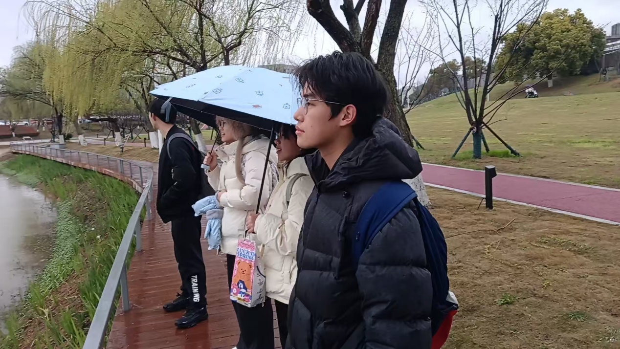 随后,大家开展“春日特辑,记录美好”摄影环节。同学们用相机记录校园春景与班级互动瞬间,在情人坡的樱花、绿草间穿梭拍摄,既放松了身心,也增进了彼此交流。阳光洒在草坪上,同学们或驻足赏景,或轻声交谈,在轻松氛围中分享对雷锋精神的理解。