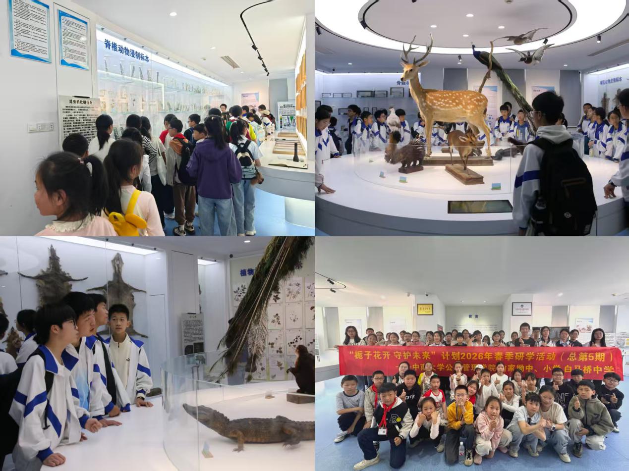 4月24日,在中南大学杏林校区、潇湘校区、麓南校区,中南大学公共管理学院与宁乡市喻家坳中学、喻家坳小学、白马桥初级中学联合开展“栀子花开 守护未来”计划2026年春季研学活动(总第5期研学)。白马桥初级中学党支部副书记黄跃明,喻家坳小学副校长、教导主任李强,公管院团委书记、本科生辅导员梁慧,喻家坳中学、小学和白马桥中学师生共108人,公管院大学生志愿者20余人参与活动。