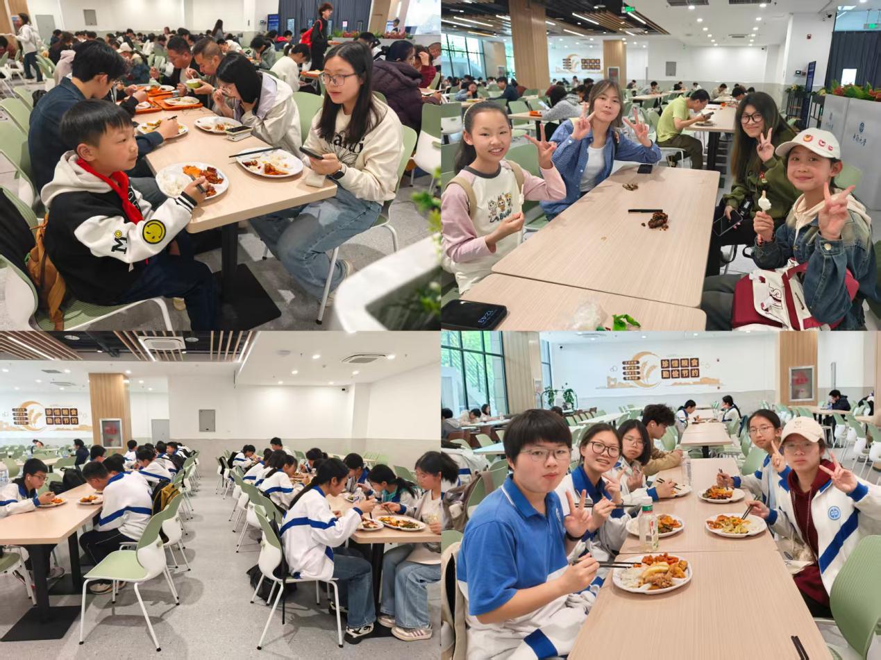 午间,全体人员前往潇湘校区一食堂就餐。热气氤氲的午餐驱散了半日行走的疲惫,志愿者与中小学生们围坐交谈,轻声问候间,亲近感悄然生长。