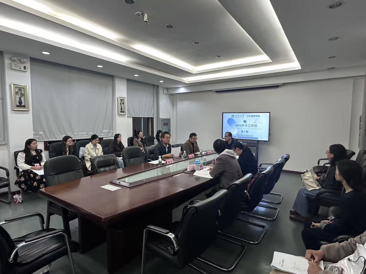 10月24日晚18:10,公共管理学院MPA首期学术工作坊在公管院307举行。院长许源源出席工作坊,MPA管理中心办公室主任赵书松、学院教师董文琪、伍如昕、雷望红、孟川瑾、徐洁及13名MPA研究生共同参与。